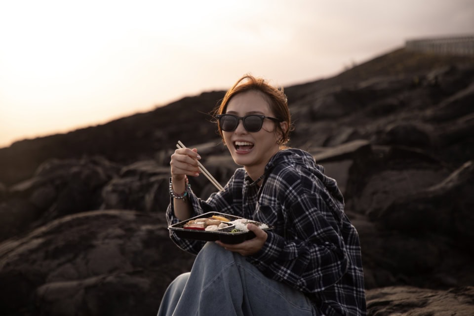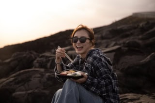 ハワイ島のことを知り尽くした<Holoholo Island Tours>のガイドKENさん。夕食は海岸線や海が見渡せる広大な溶岩台地のうえで。刻一刻と表情を変える火山を背景に食べるごはんは、一生忘れられない味になりました